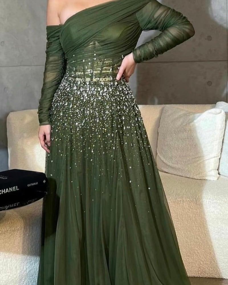 فستان زيتي مطرز